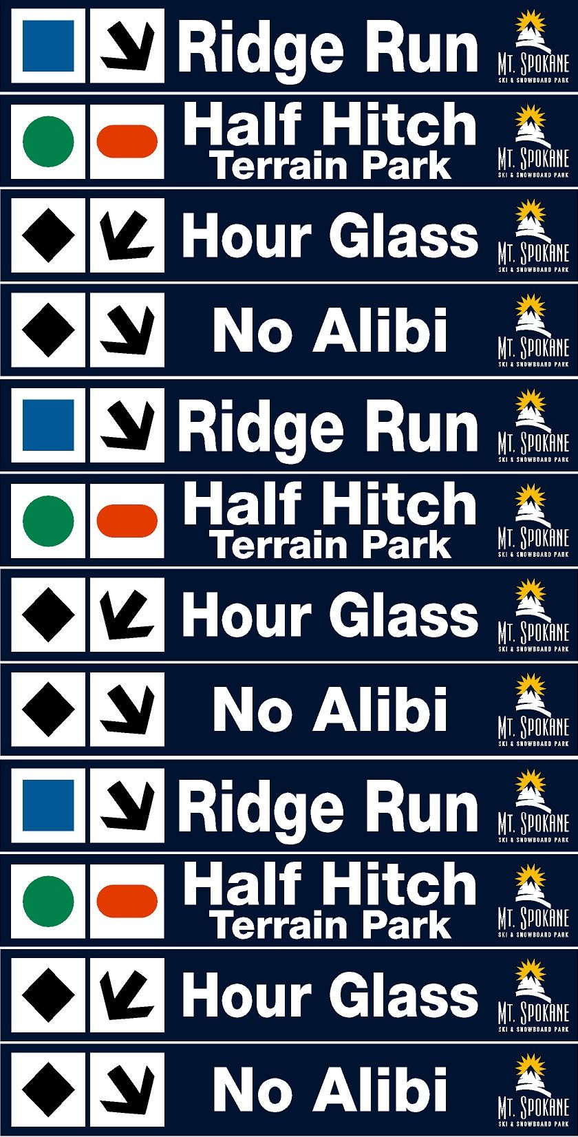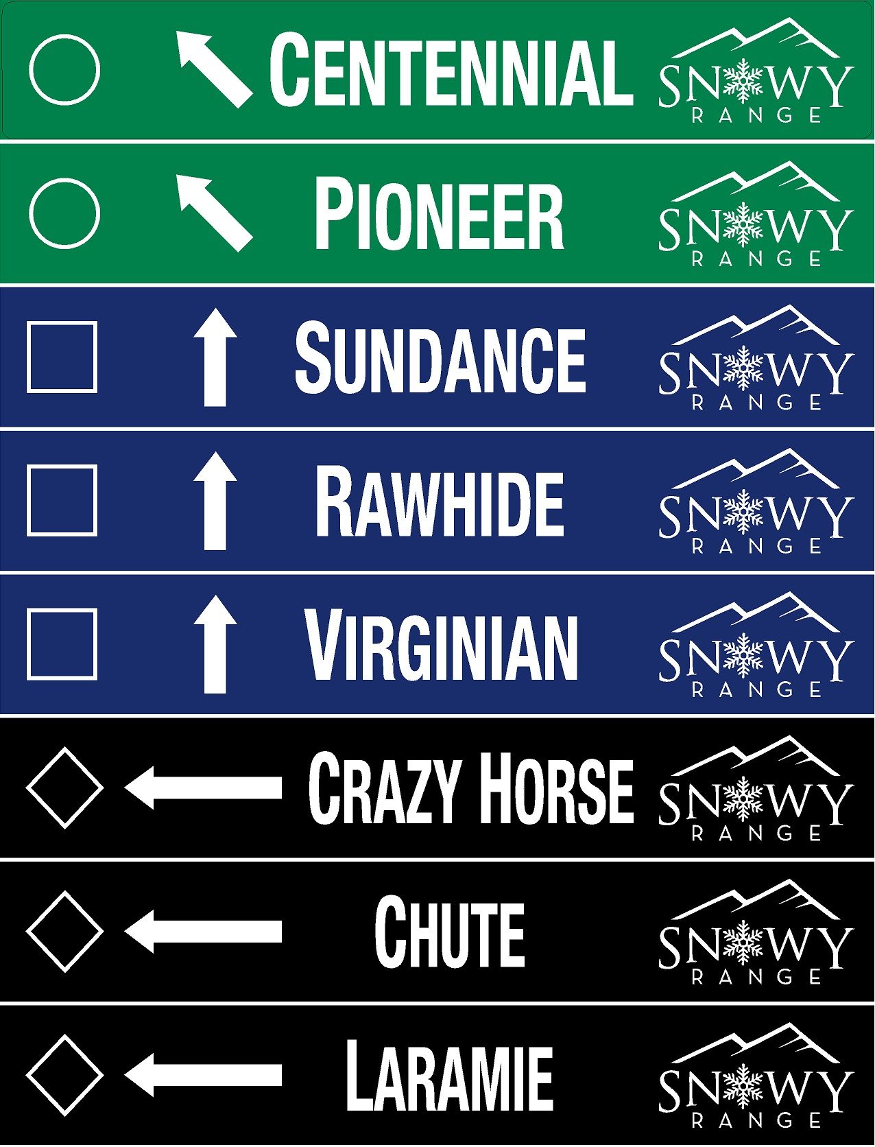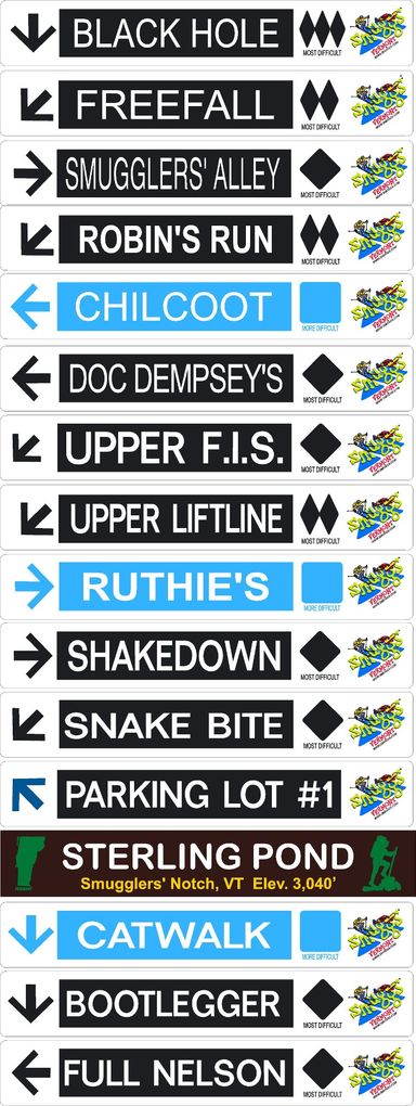 If you would like a Trail Sign that is not currently available at your favorite Ski Resort, please contact the resort directly and inquire about them including it in their next order with us. We do not create Individual Custom Trail Signs.