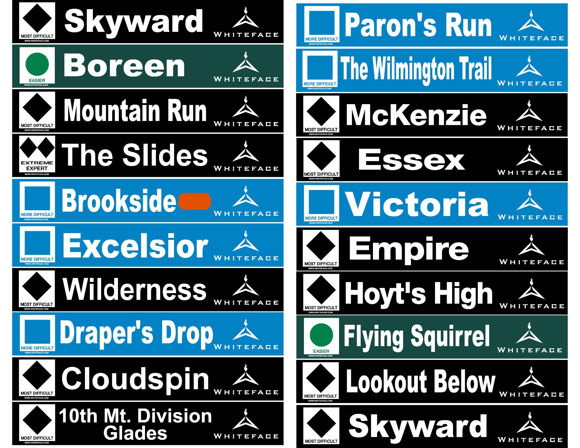 We produce these Trail Signs exclusively for the Ski Areas and are not available for general retail sales from us. Please visit the ski area websites or retail shops to purchase. Don't settle for generic trail signs when your Ski Resort could be selling the Original Replica Ski Trail Signs!